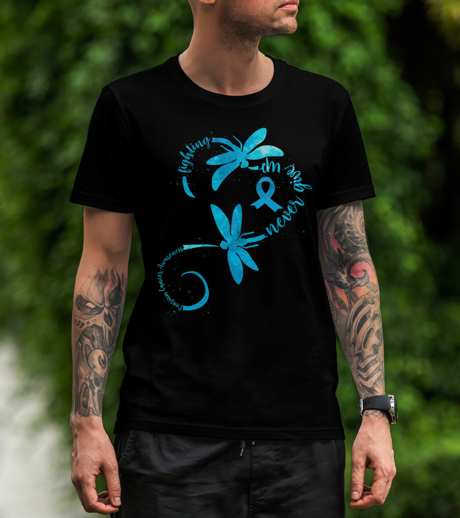 Fighting Never Give Up Ovarian Cancer Awareness Dragonfly T-Shirt