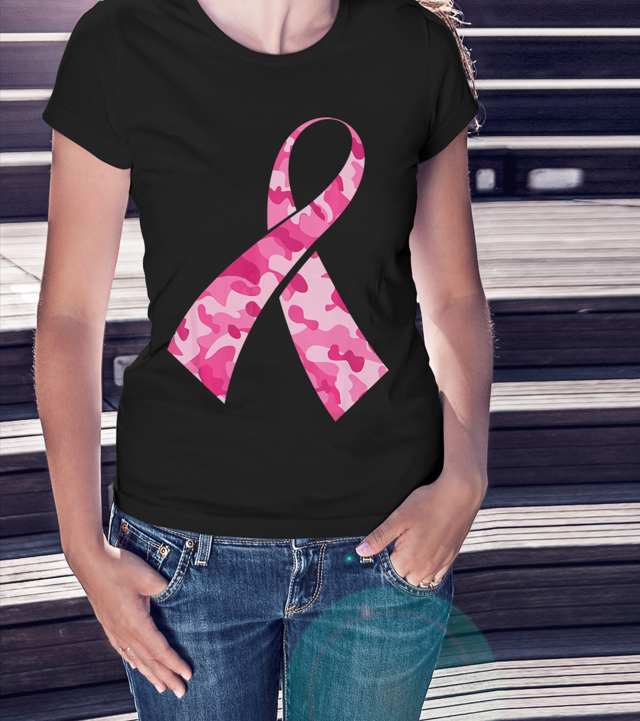 The Pink Camouflage Ribbon Breast Cancer Awareness Month T-shirt is designed for everyday wear and a consistent fit. Fabric is pre-shrunk ring-spun cotton with durable stitching. See the size chart below for exact measurements.