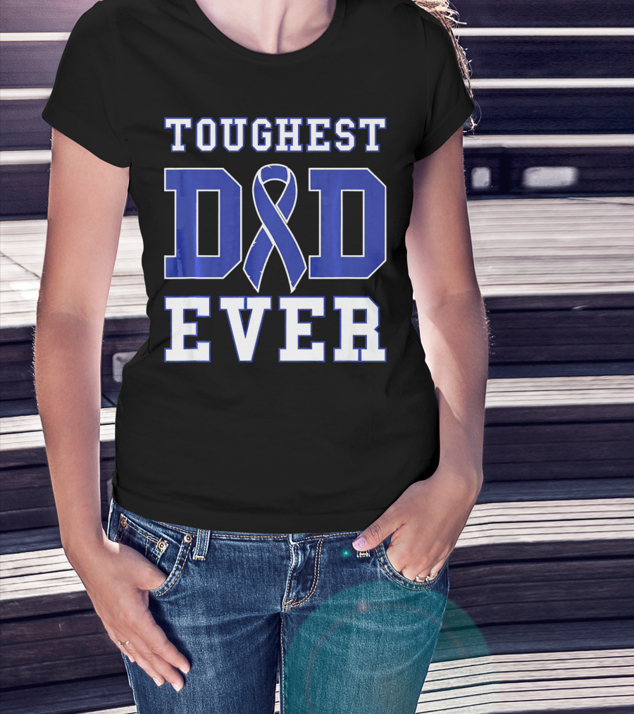 Toughest Dad Ever Colorectal Cancer Awareness Blue T-Shirt
