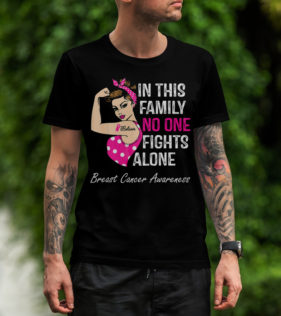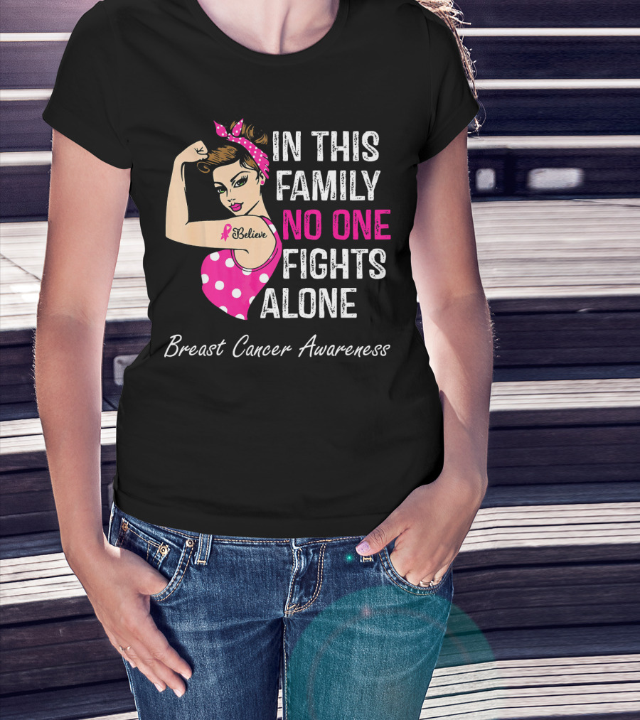 In This Family No One Fights Alone Breast Cancer Awareness Believe T-Shirt