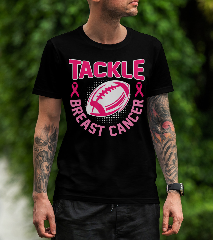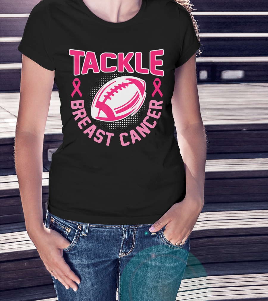 Tackle Breast Cancer Pink Ribbon Awareness Football T-Shirt