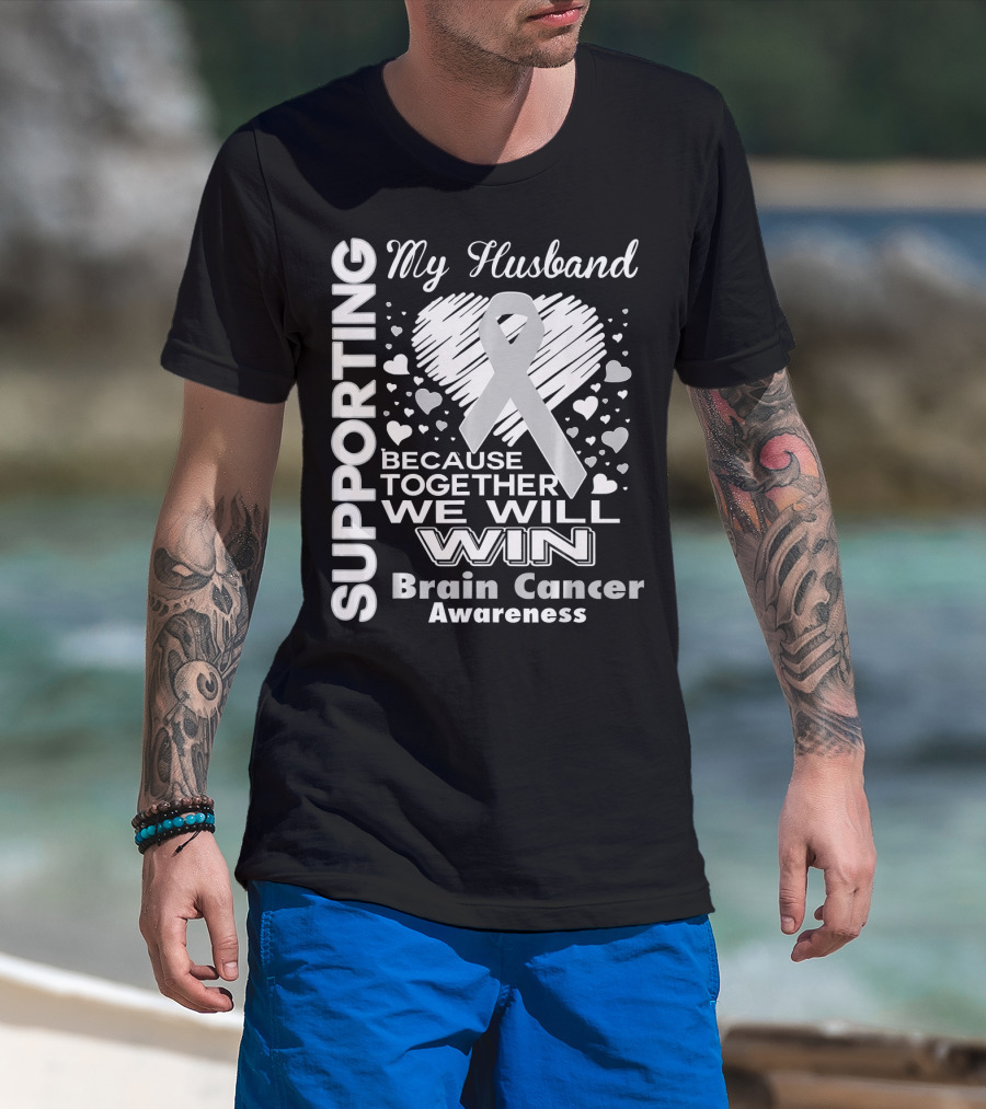 Supporting My Husband Because Together We Will Win Brain Cancer Awareness T-Shirt