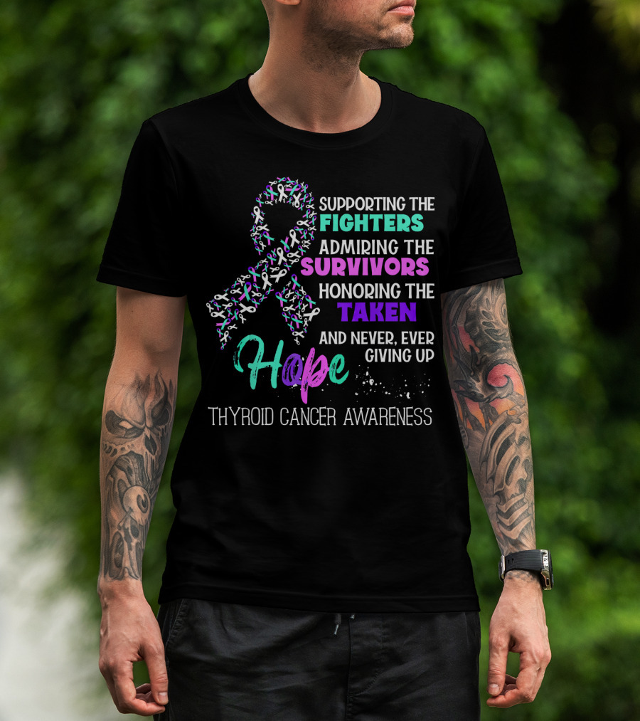 Supporting The Fighters Admiring The Survivors Honoring The Taken Hope Thyroid Cancer Awareness T-Shirt