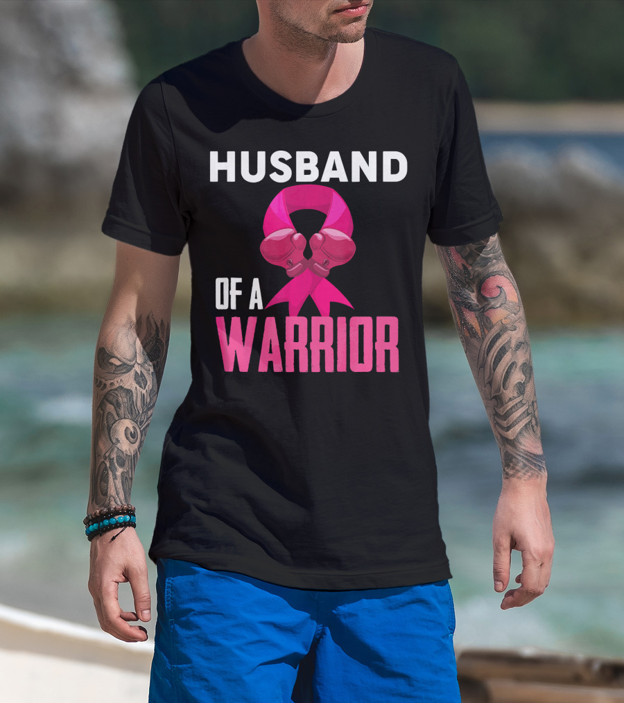 Husband Of A Warrior Breast Cancer Awareness Boxing Gloves T-Shirt