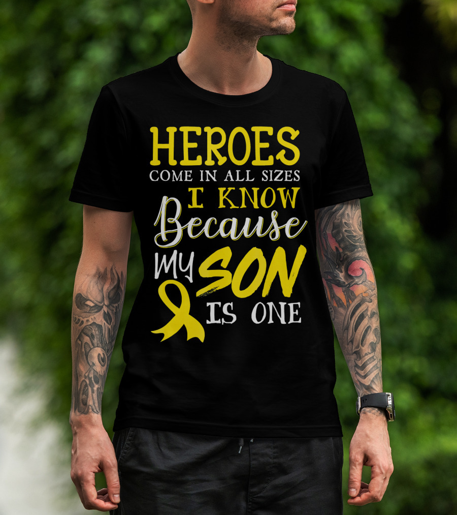 Heroes Come In All Sizes I Know Because My Son Is One Childhood Cancer Awareness T-Shirt