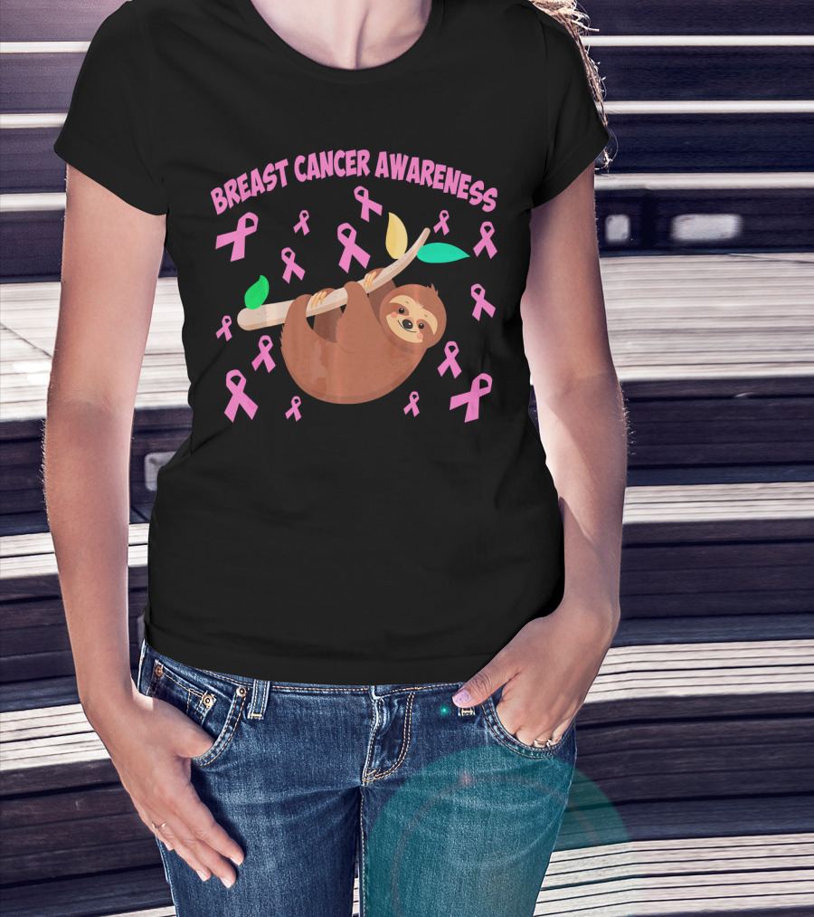 Breast Cancer Awareness Cute Sloth Pink Ribbons T-Shirt