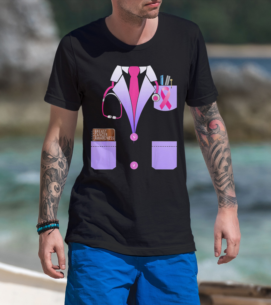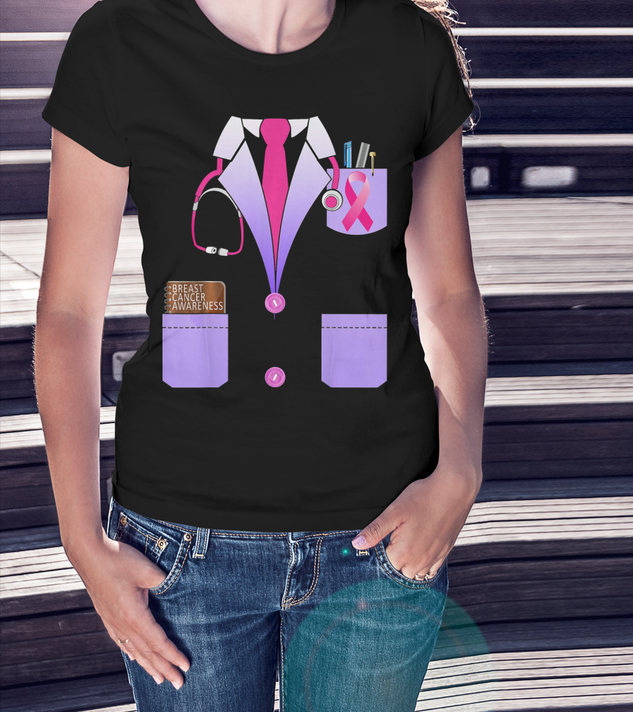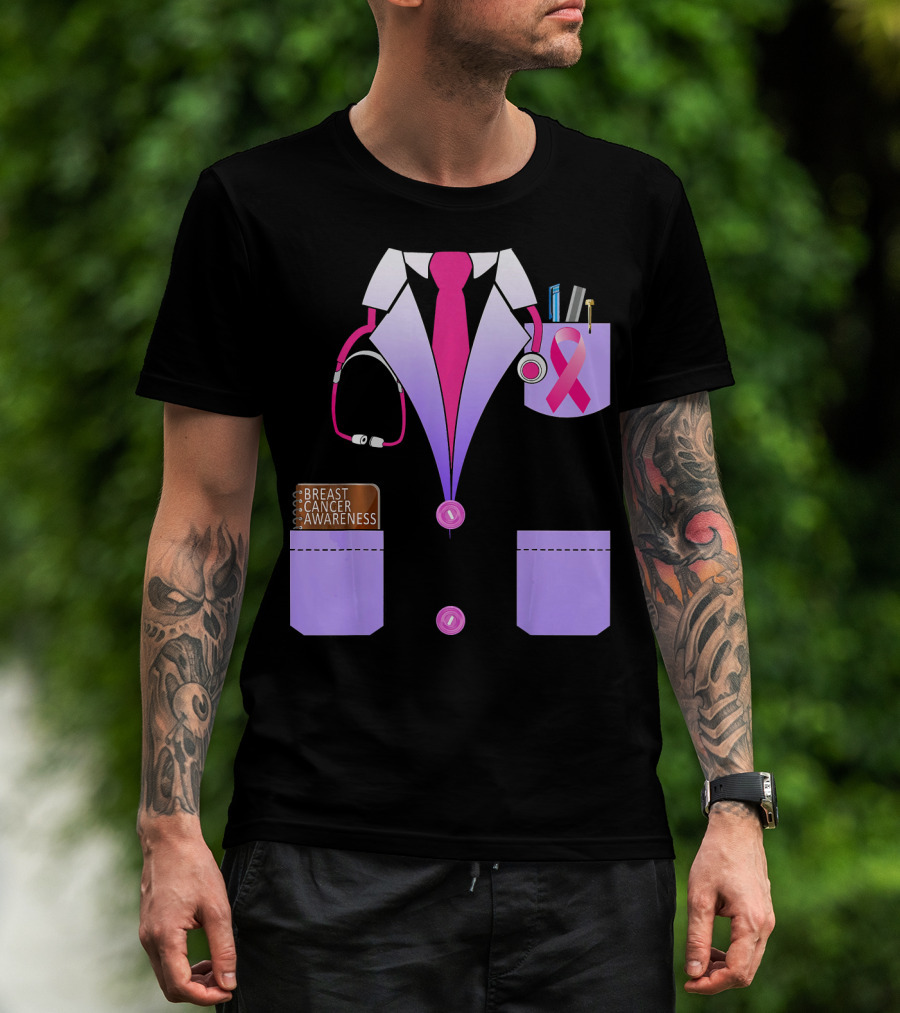 Breast Cancer Awareness Doctor Stethoscope Ribbon Medical Suit T-Shirt