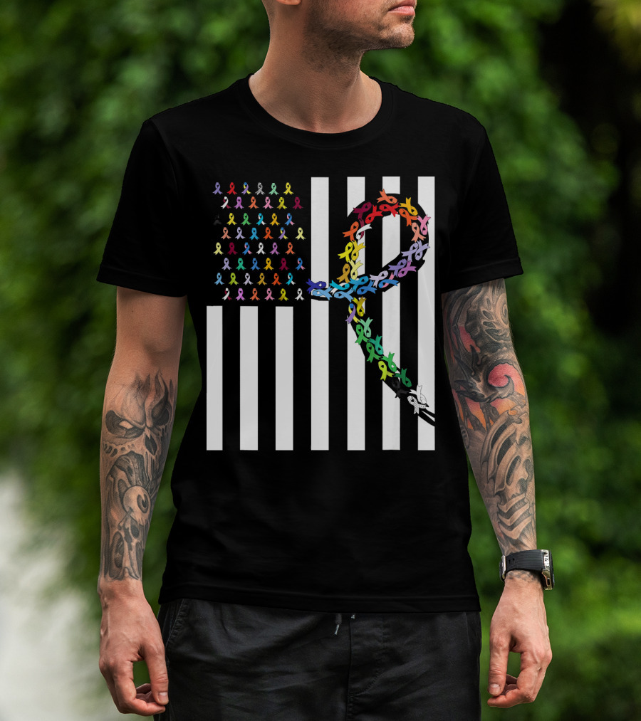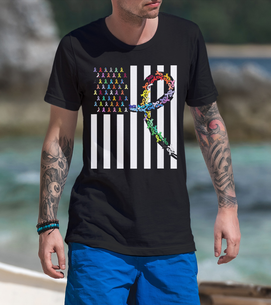 All Cancer Matters Awareness USA Flag Ribbon Stripes T-Shirt