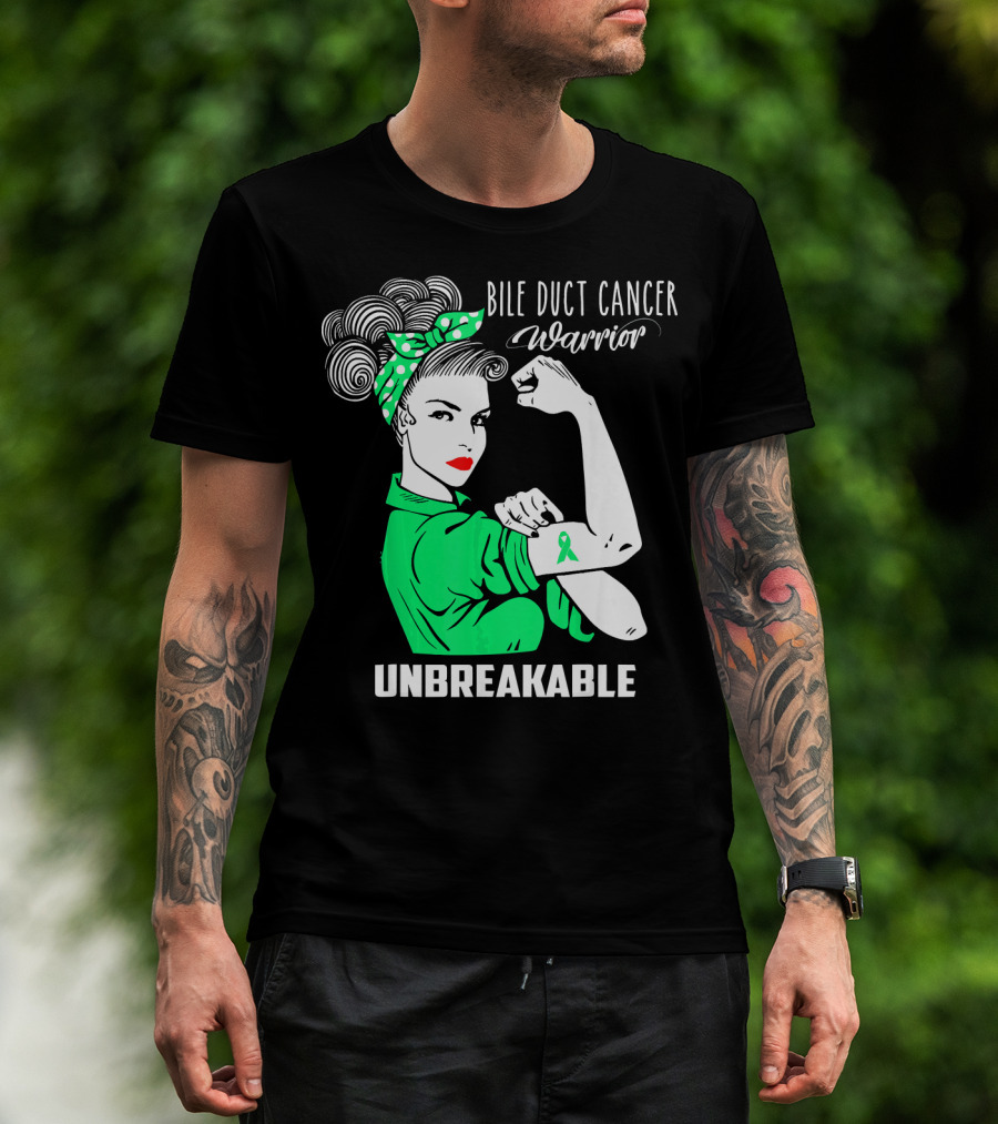 Bile Duct Cancer Warrior Unbreakable Rosie The Riveter Style With Awareness T-Shirt