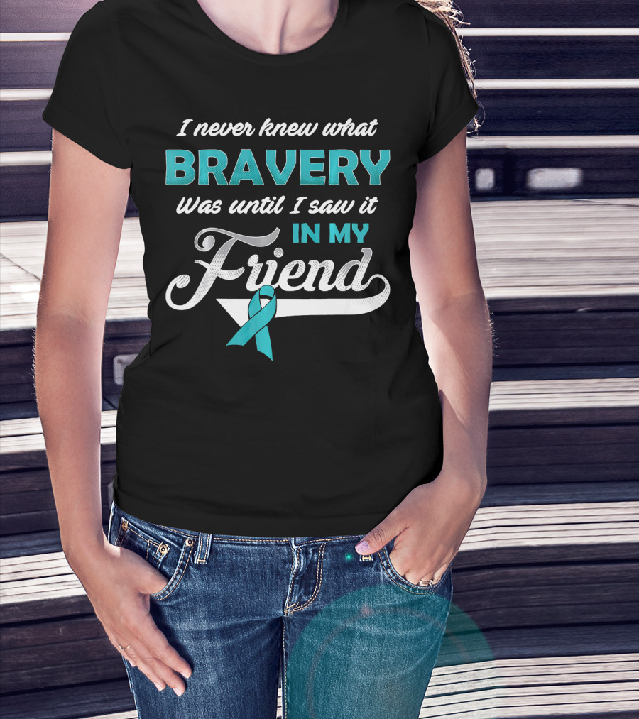 I Never Knew What Bravery Was Until I Saw It In My Friend Ovarian Cancer Awareness T-Shirt