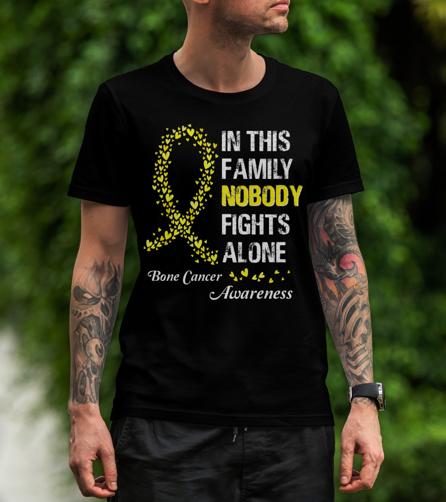 In This Family Nobody Fights Alone Bone Cancer Awareness T-Shirt