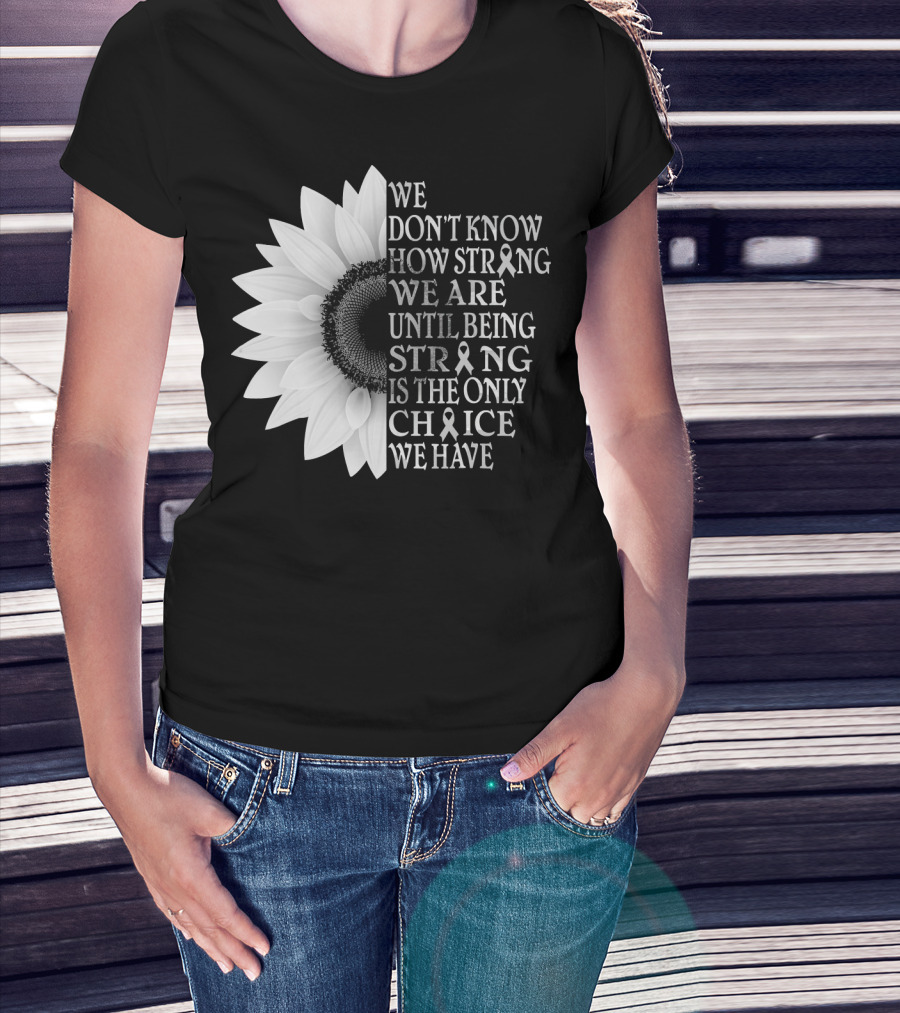 We Don't Know How Strong We Are Until Being Strong Is The Only Choice We Have Sunflower Brain Cancer Gray T-Shirt