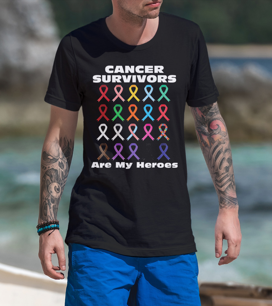 CANCER SURVIVORS ARE MY HEROES Multiple Awareness Ribbons T-Shirt