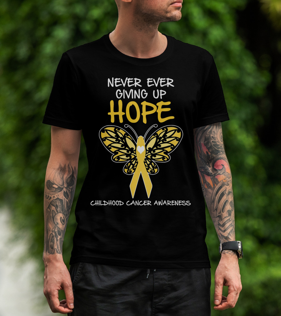 Never Ever Giving Up Hope Childhood Cancer Awareness T-Shirt