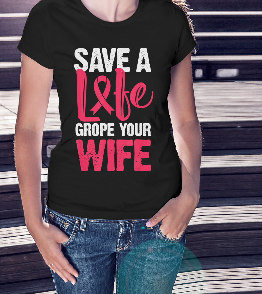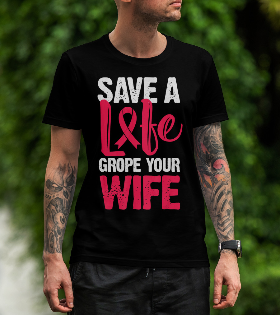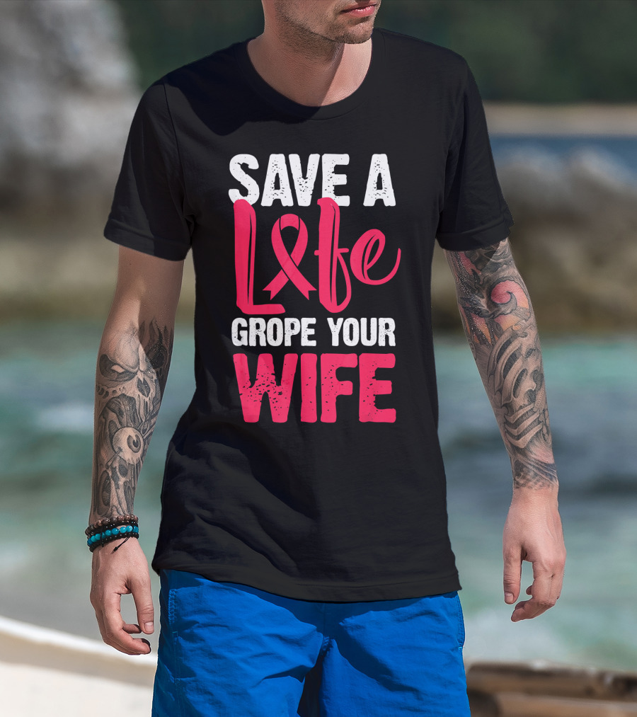 Save A Life Grope Your Wife Breast Cancer Awareness Funny Husband T-Shirt