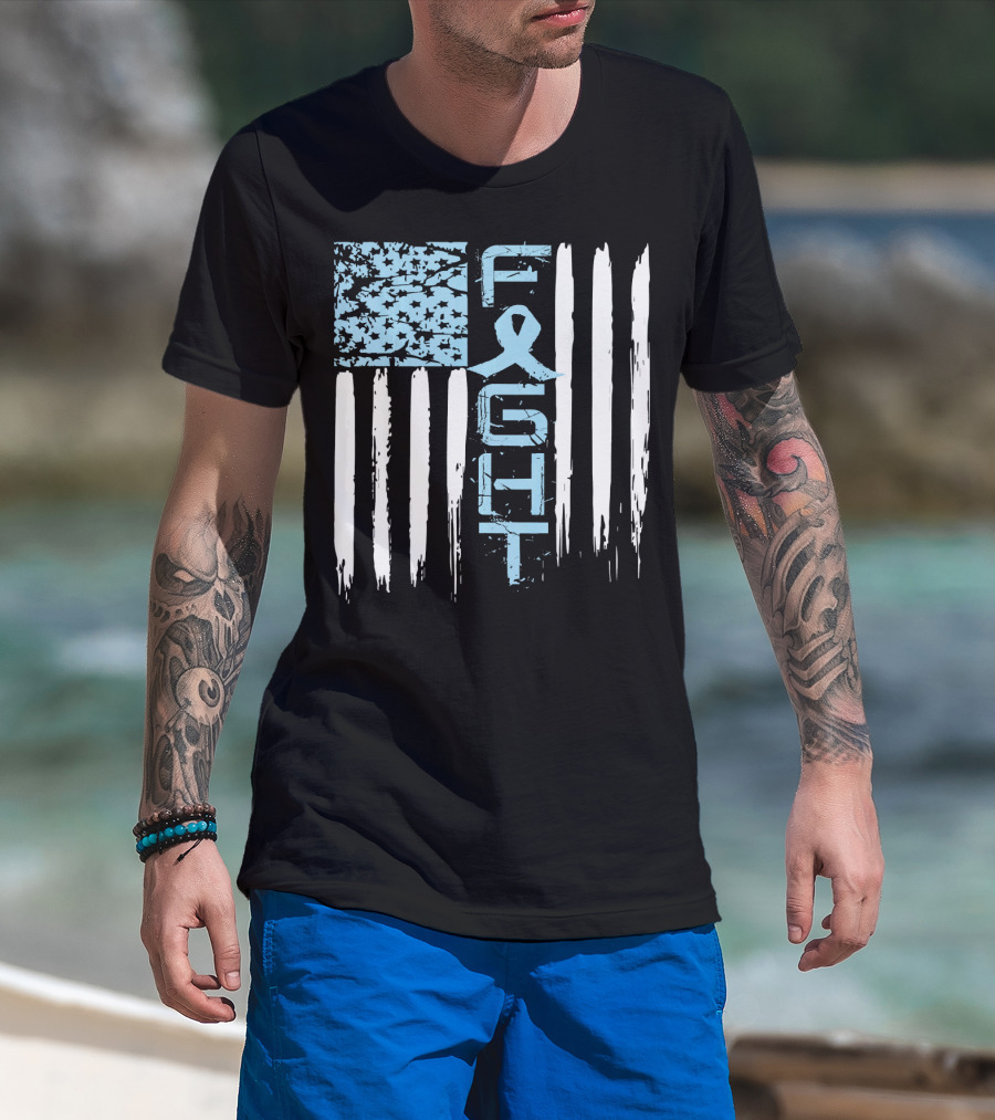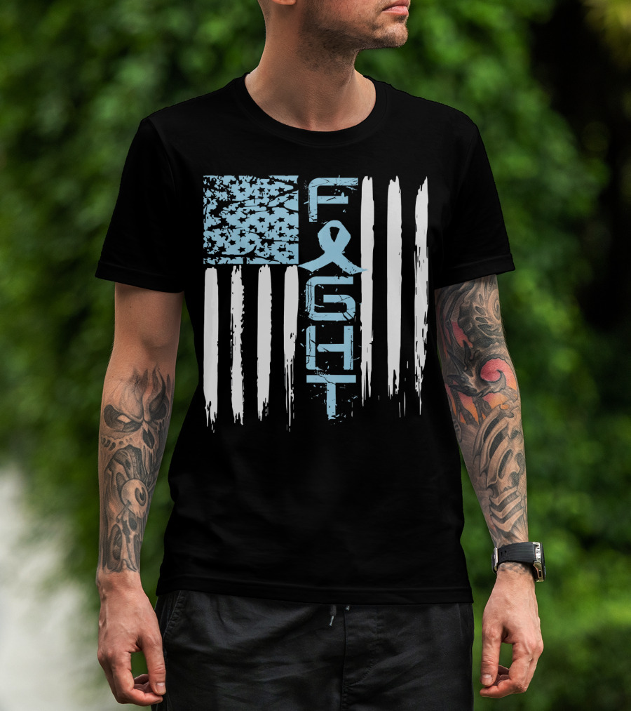 Prostate Cancer Awareness Fight Blue Ribbon American Flag T-Shirt