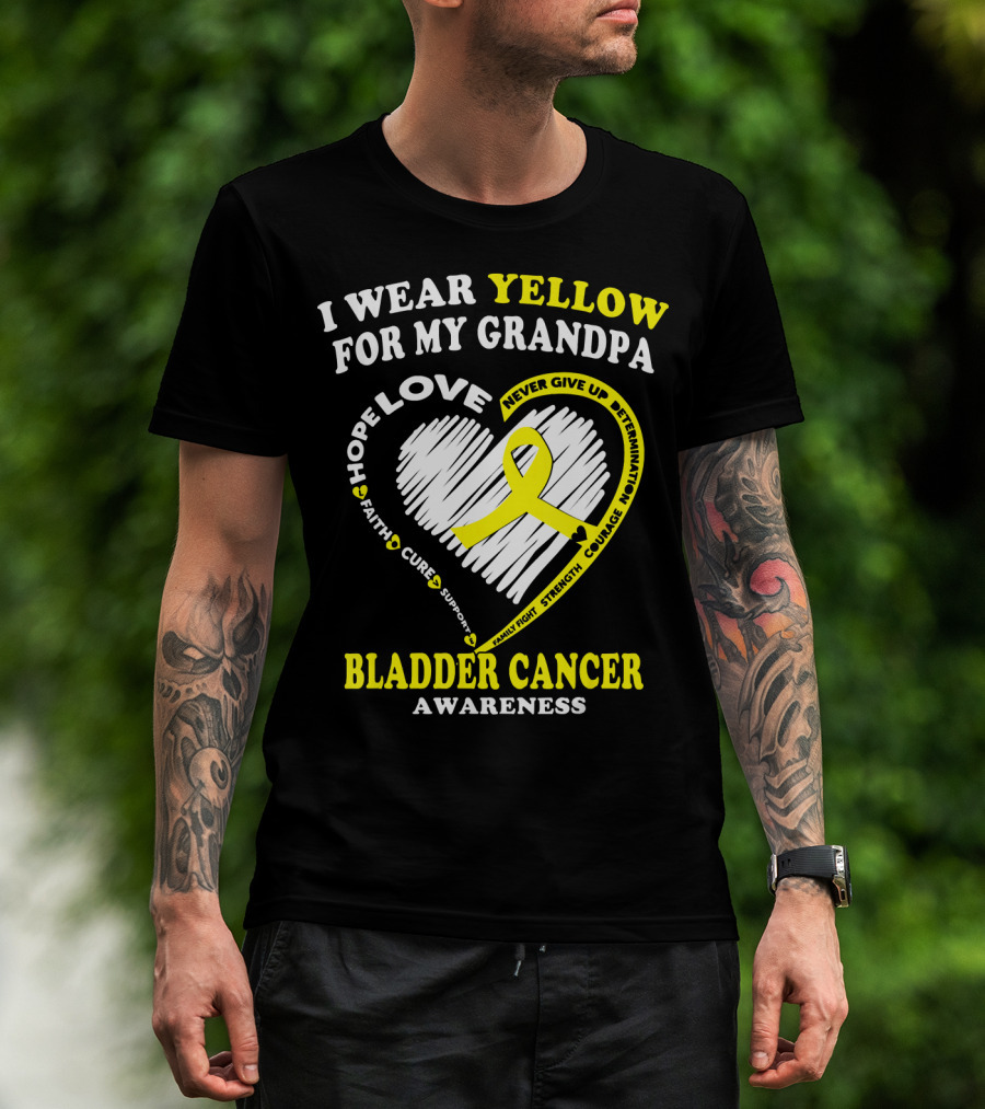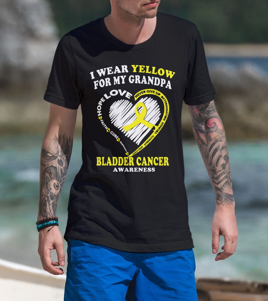 I Wear Yellow For My Grandpa Bladder Cancer Awareness Hope Love Courage T-Shirt