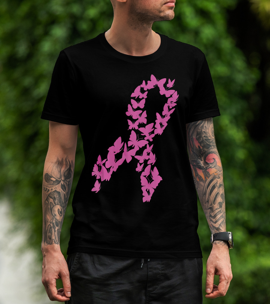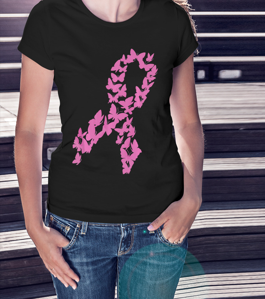 Pink Ribbon Butterfly Awareness Breast Cancer Cute T-Shirt