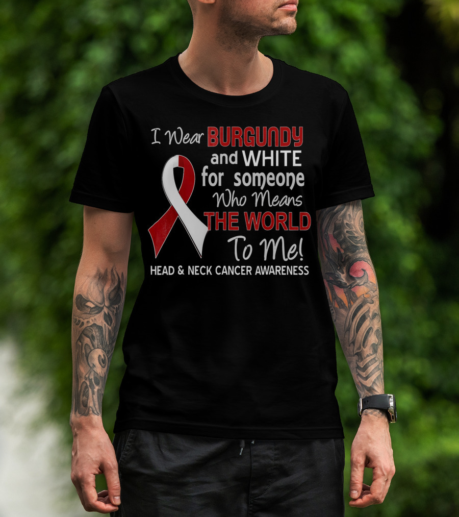 I Wear Burgundy And White For Someone Who Means The World To Me Head And Neck Cancer Awareness T-Shirt