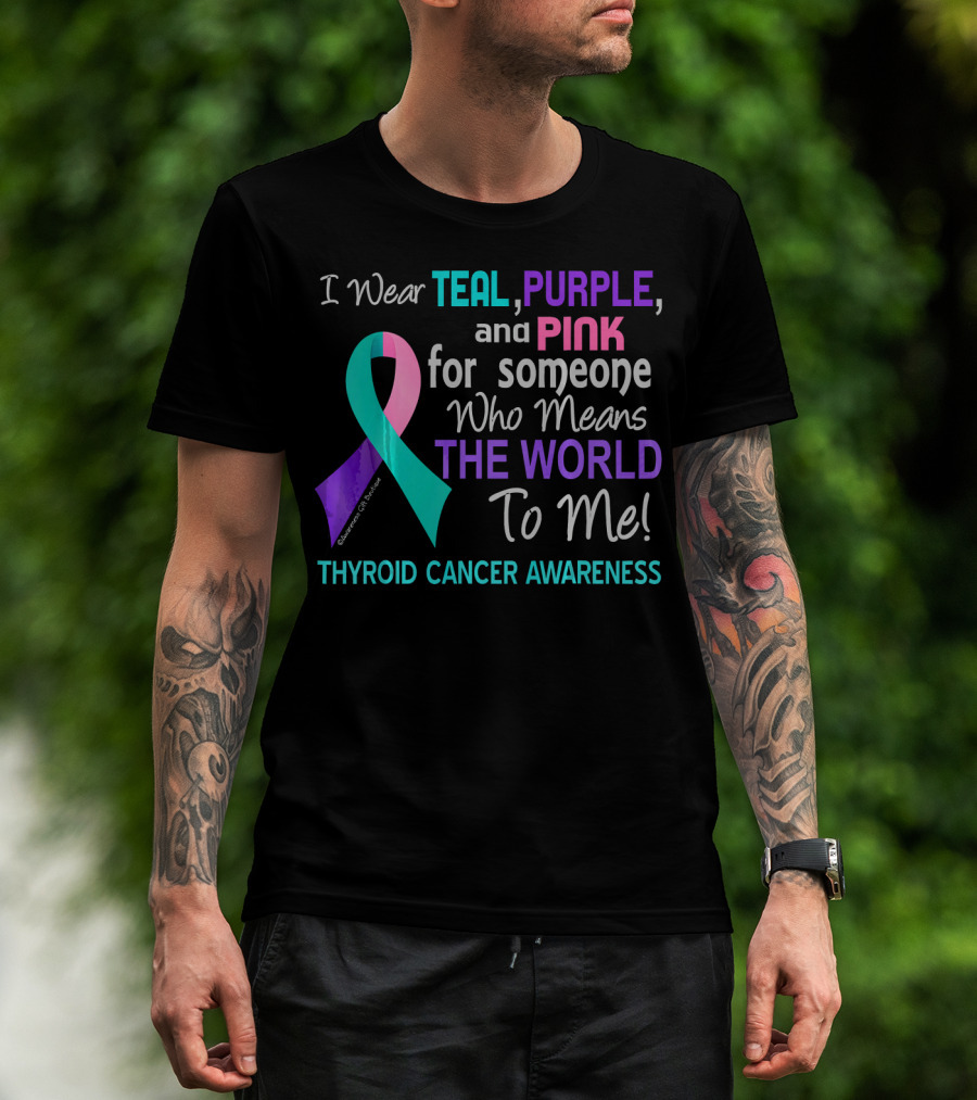 I Wear Teal Purple And Pink For Someone Who Means The World To Me Thyroid Cancer Awareness T-Shirt