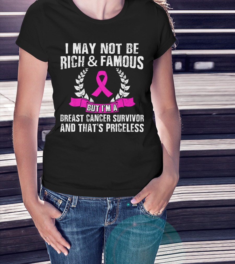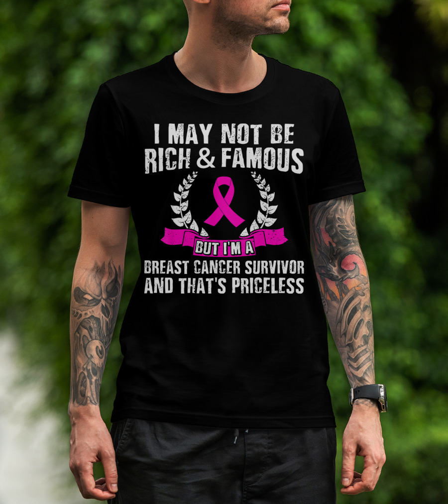 I May Not Be Rich And Famous But I'm A Breast Cancer Survivor And That's Priceless Pink Ribbon Laurel T-Shirt