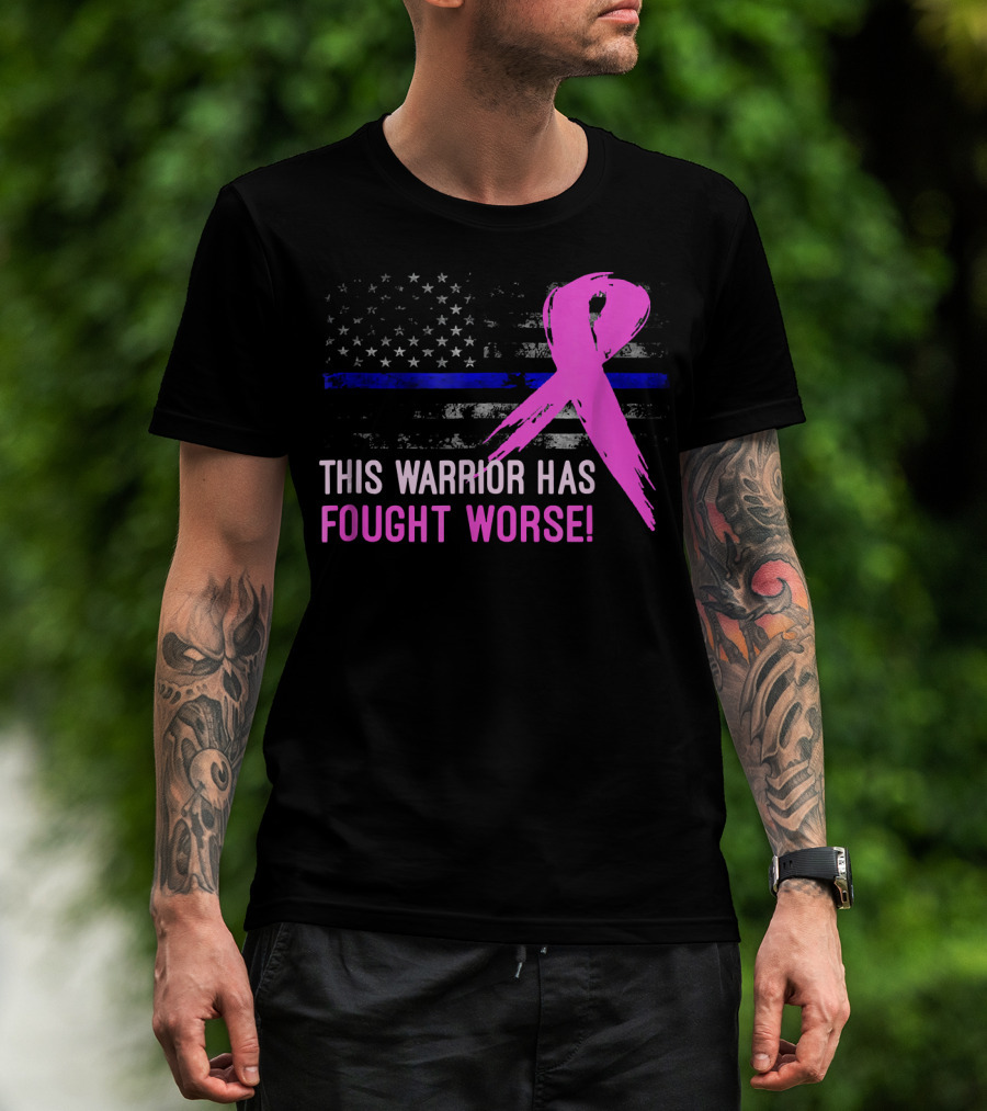 Thin Blue Line American Flag Pink Ribbon This Warrior Has Fought Worse T-Shirt