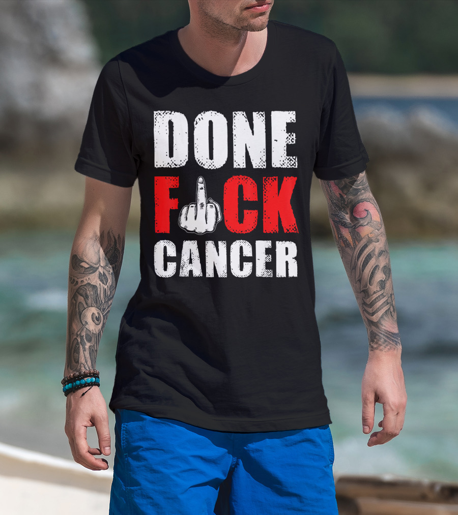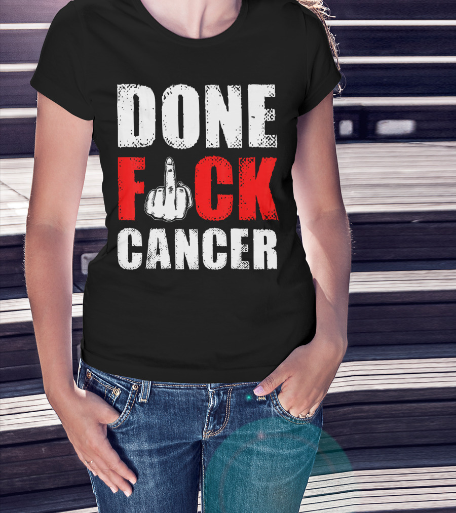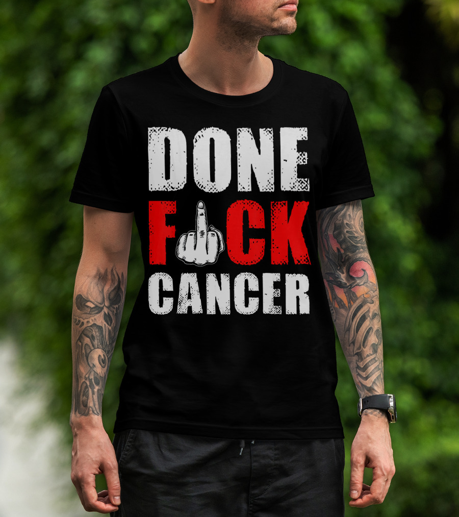 The DONE F CANCER T-shirt is designed for everyday wear and a consistent fit. Fabric is pre-shrunk ring-spun cotton with durable stitching. See the size chart below for exact measurements.