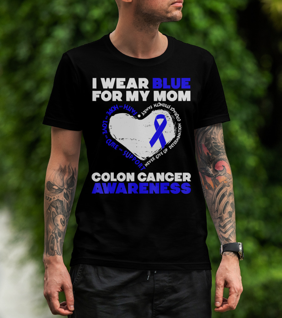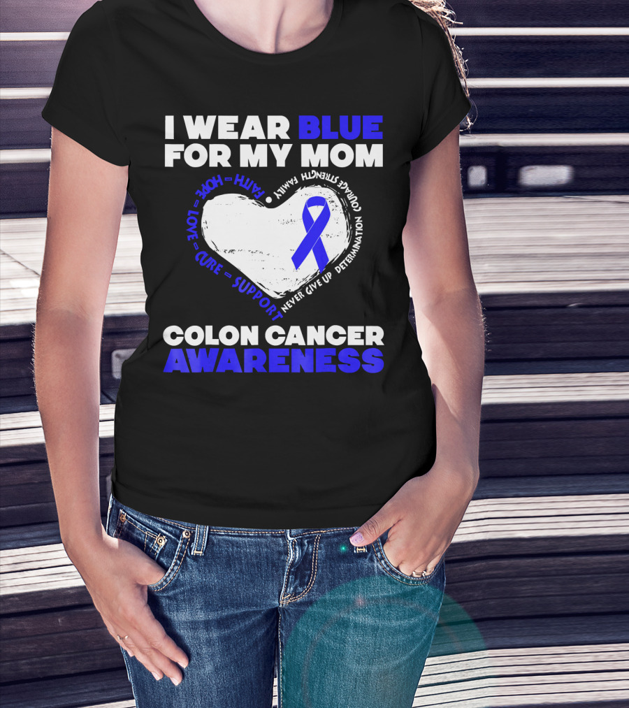 I Wear Blue For My Mom Colon Cancer Awareness Faith Hope Love Cure Support T-Shirt