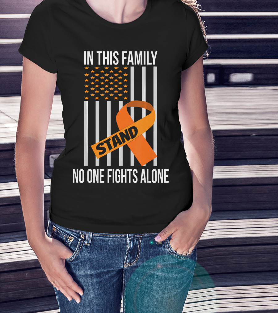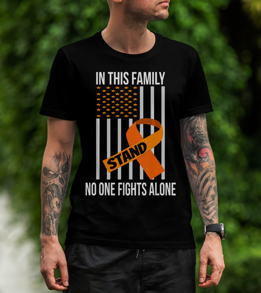 In This Family No One Fights Alone USA Flag Orange Ribbon Stand Kidney Cancer Awareness T-Shirt