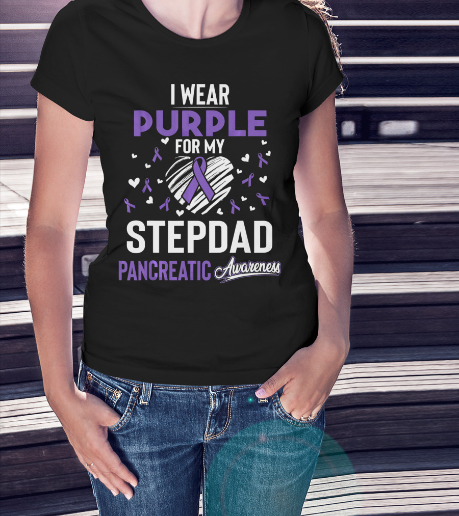 I Wear Purple For My Stepdad Pancreatic Awareness T-Shirt