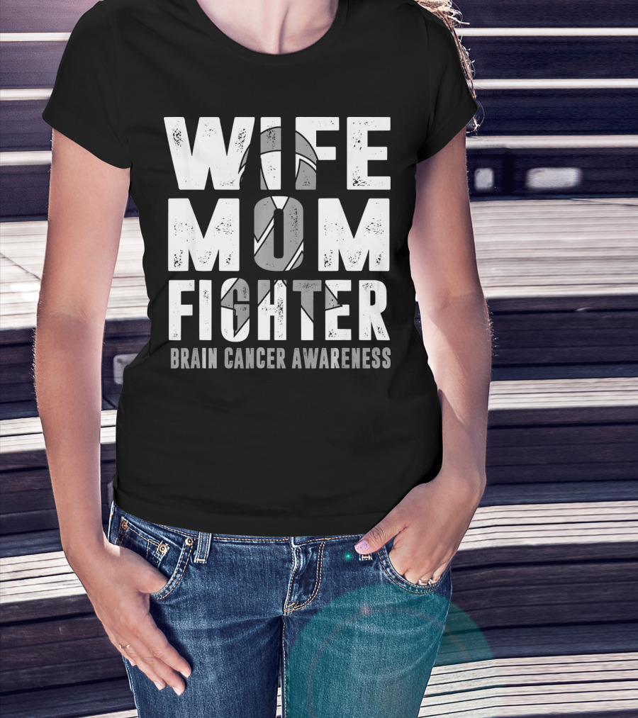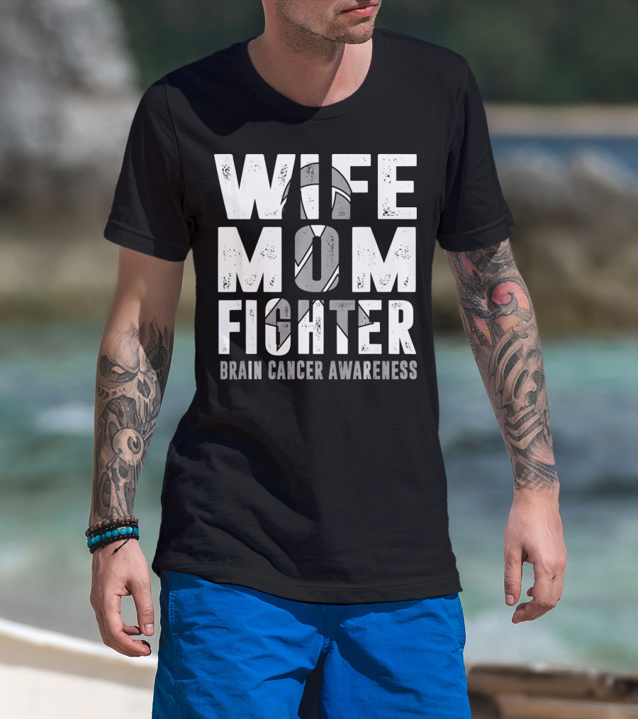 Wife Mom Fighter Brain Cancer Awareness Support Tattoo T-Shirt
