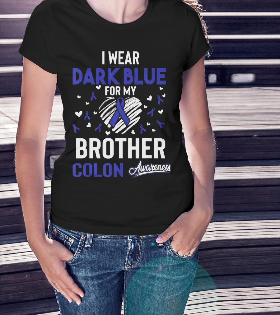 I Wear Dark Blue For My Brother Colon Awareness Ribbon Hearts T-Shirt