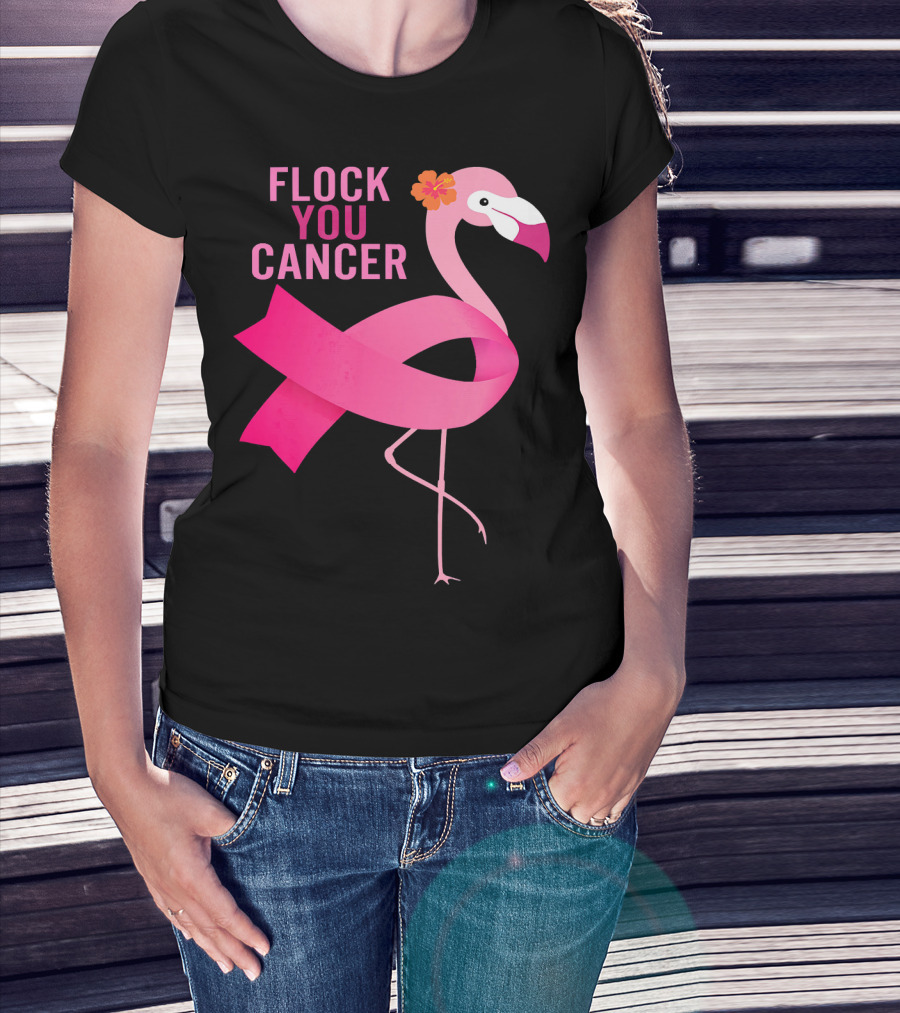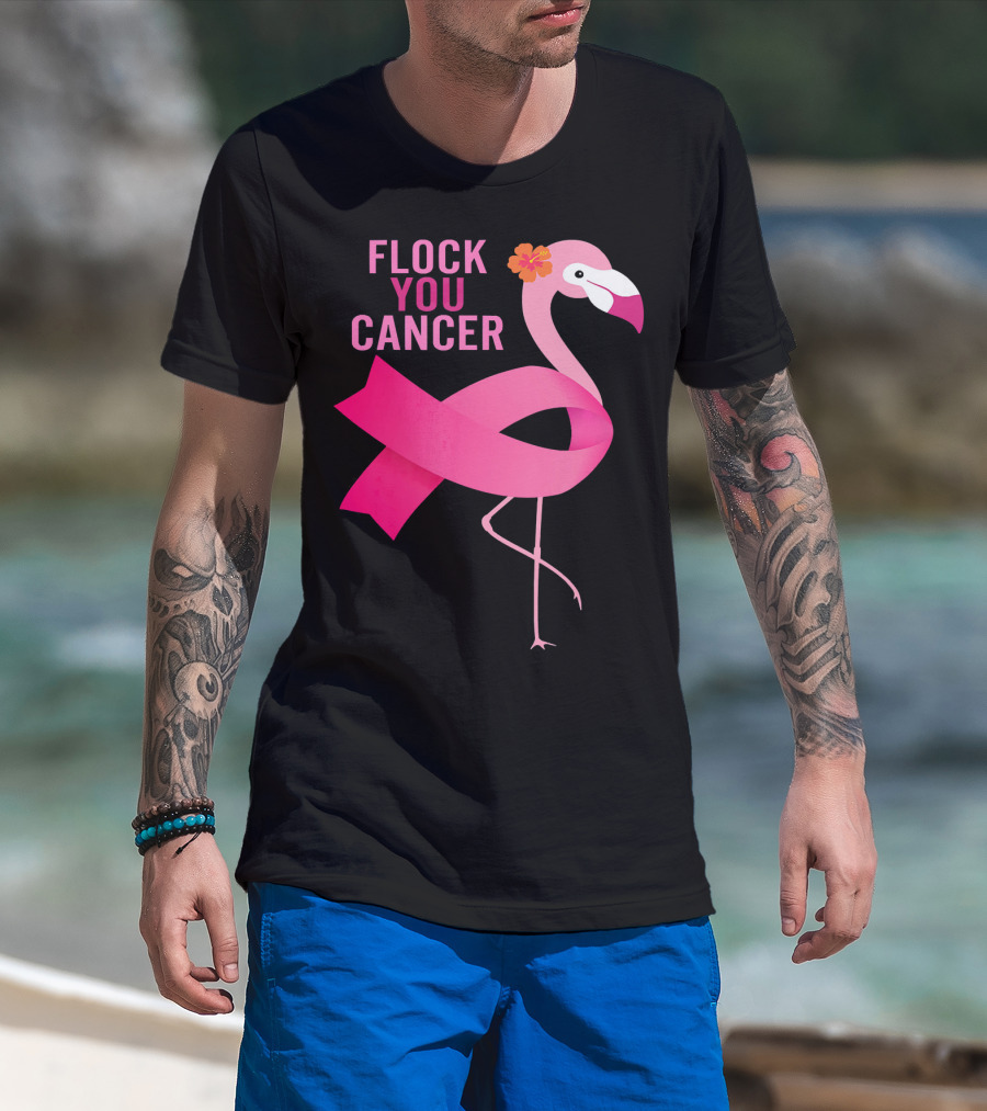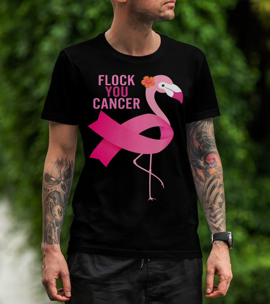 Flock You Cancer Flamingo Pink Ribbon October Breast Awareness T-Shirt