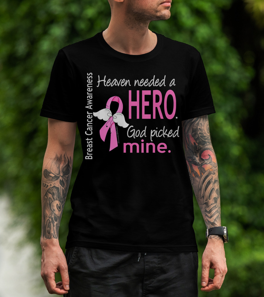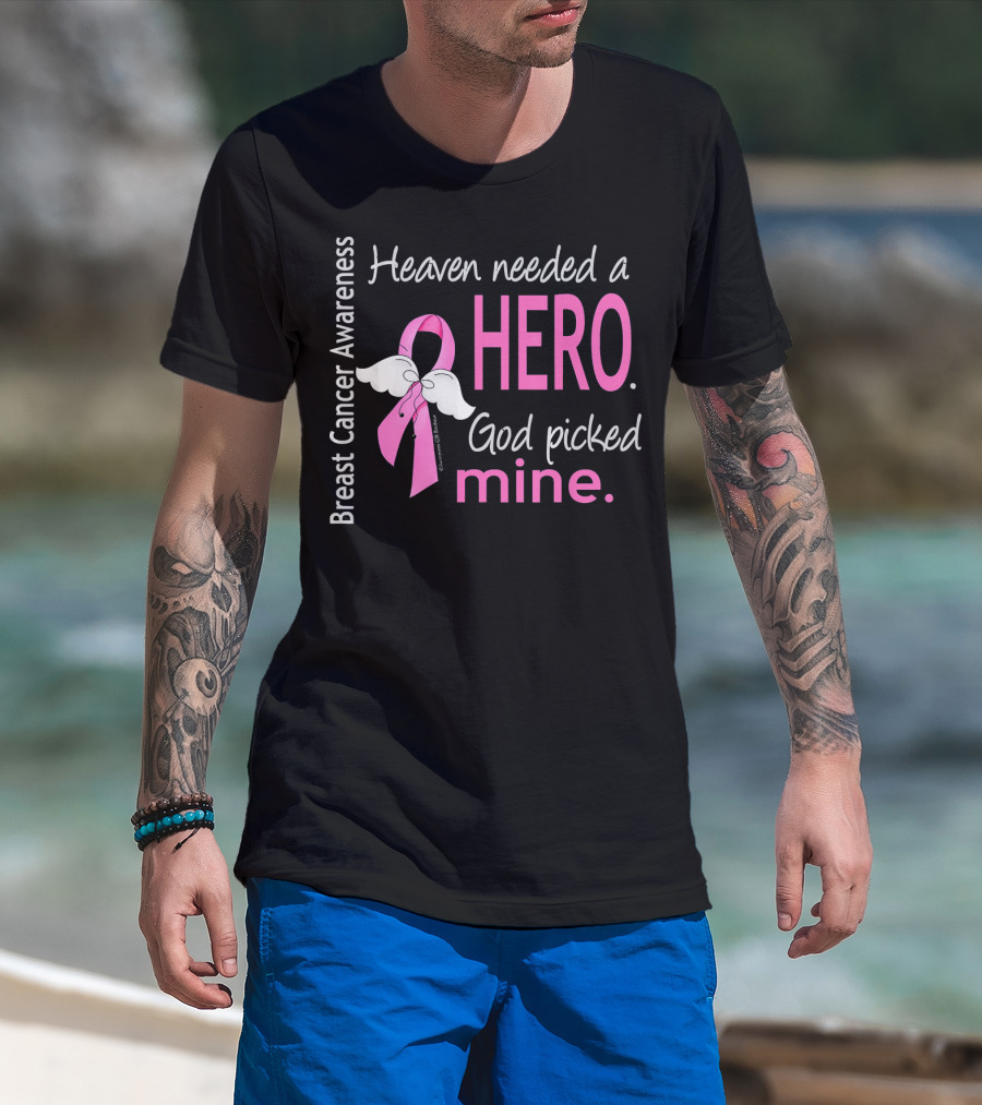 Heaven Needed A Hero God Picked Mine Breast Cancer Awareness T-Shirt