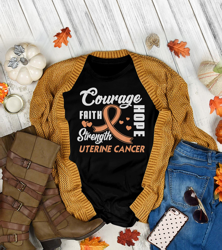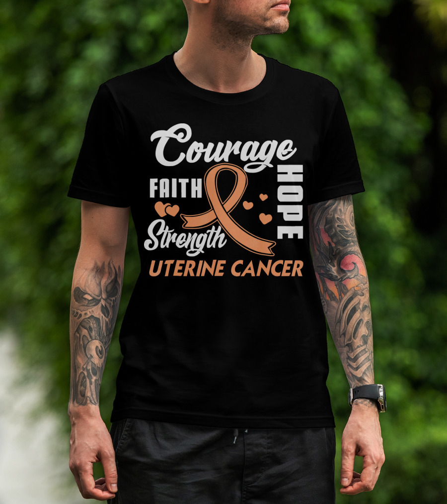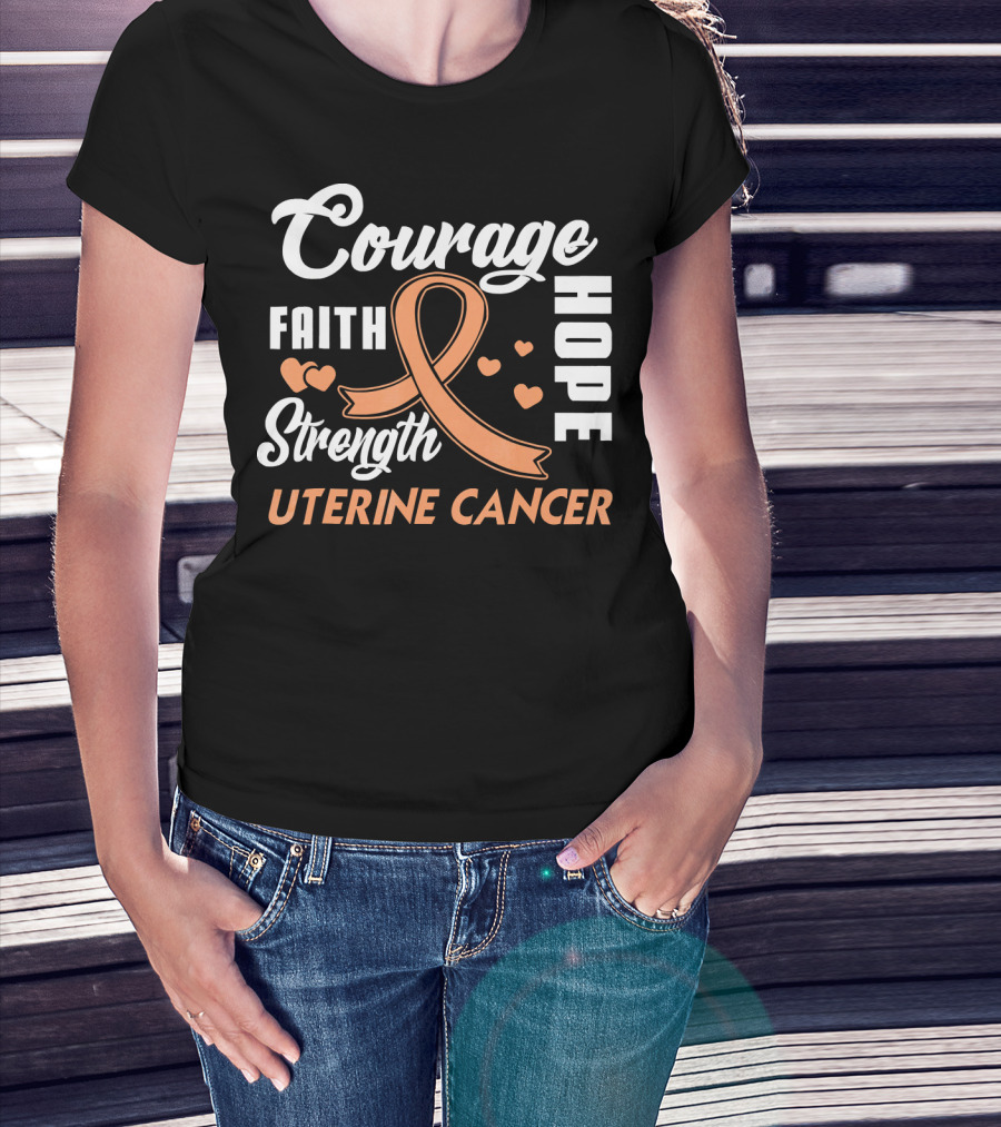 Courage Faith Strength Hope Uterine Cancer Fight Wear Peach T-Shirt