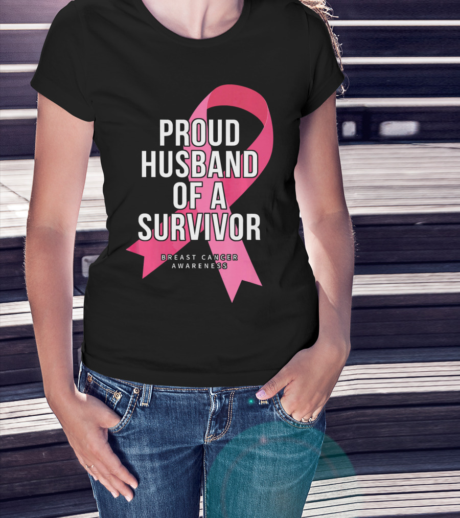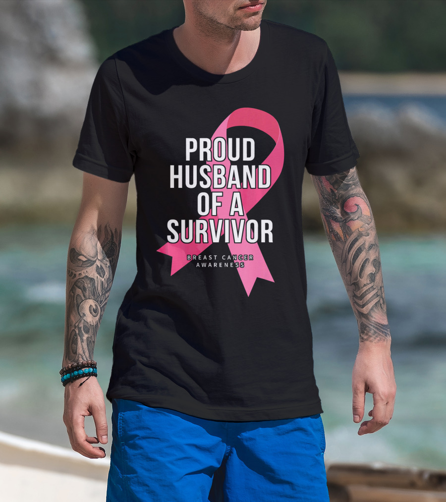 Proud Husband Of A Survivor Breast Cancer Awareness Pink T-Shirt