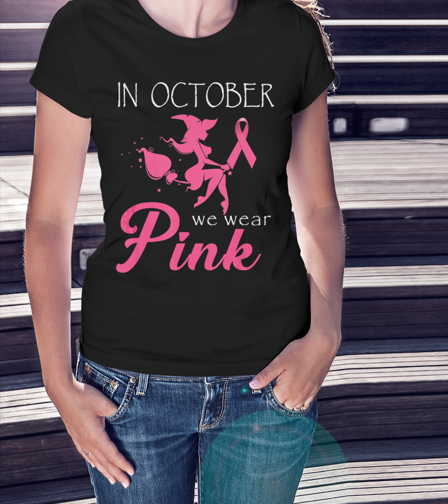 The In October We Wear Pink Witch T-shirt is designed for everyday wear and a consistent fit. Fabric is pre-shrunk ring-spun cotton with durable stitching. See the size chart below for exact measurements.
