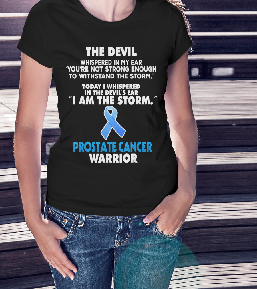 How much will this THE DEVIL WHISPERED IN MY EAR YOU'RE NOT STRONG ENOUGH TO WITHSTAND THE STORM TODAY I WHISPERED IN THE DEVIL'S EAR I AM THE STORM PROSTATE CANCER WARRIOR shirt shrink?