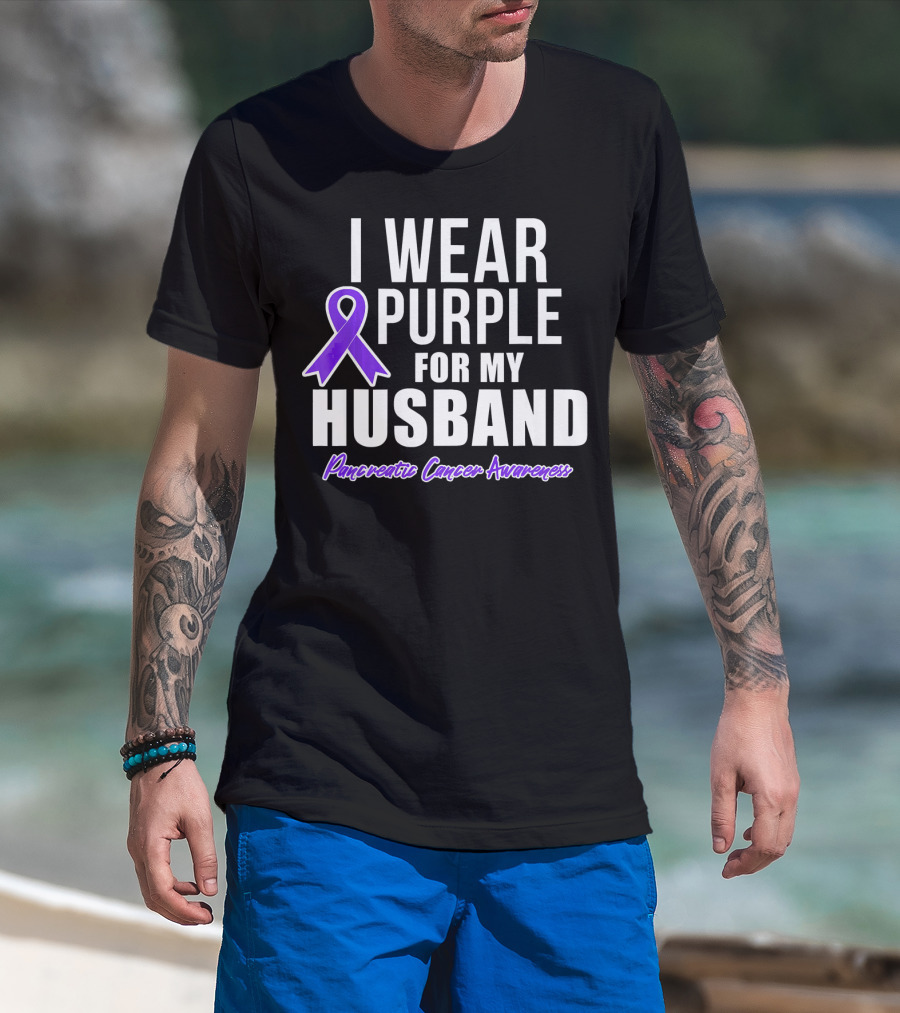 I Wear Purple For My Husband Pancreatic Cancer Awareness T-Shirt