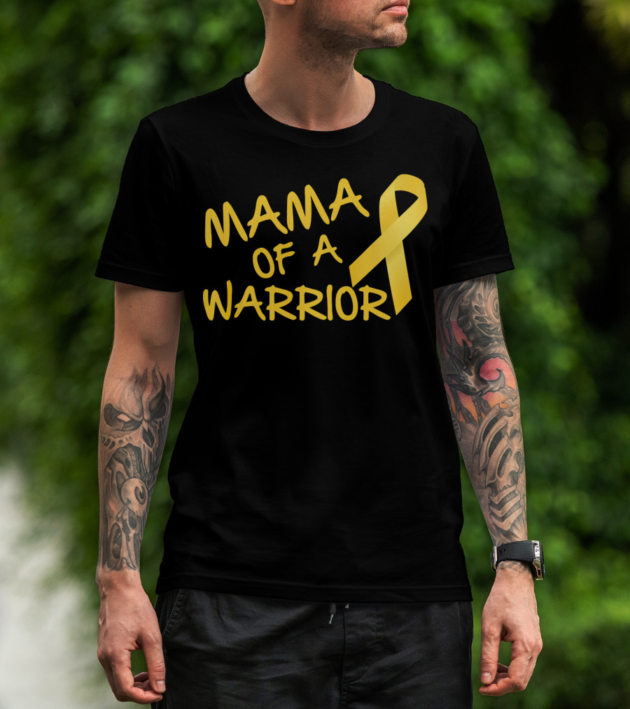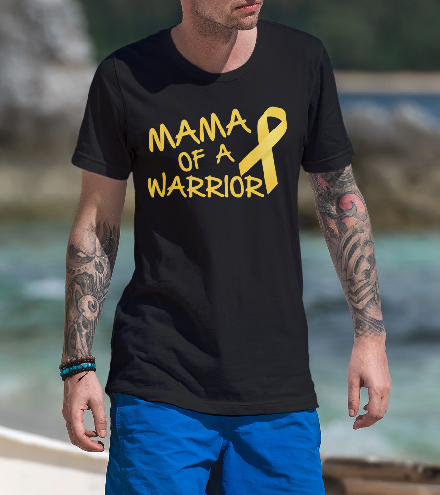 Mama Of A Warrior Yellow Ribbon Childhood Cancer Awareness T-Shirt