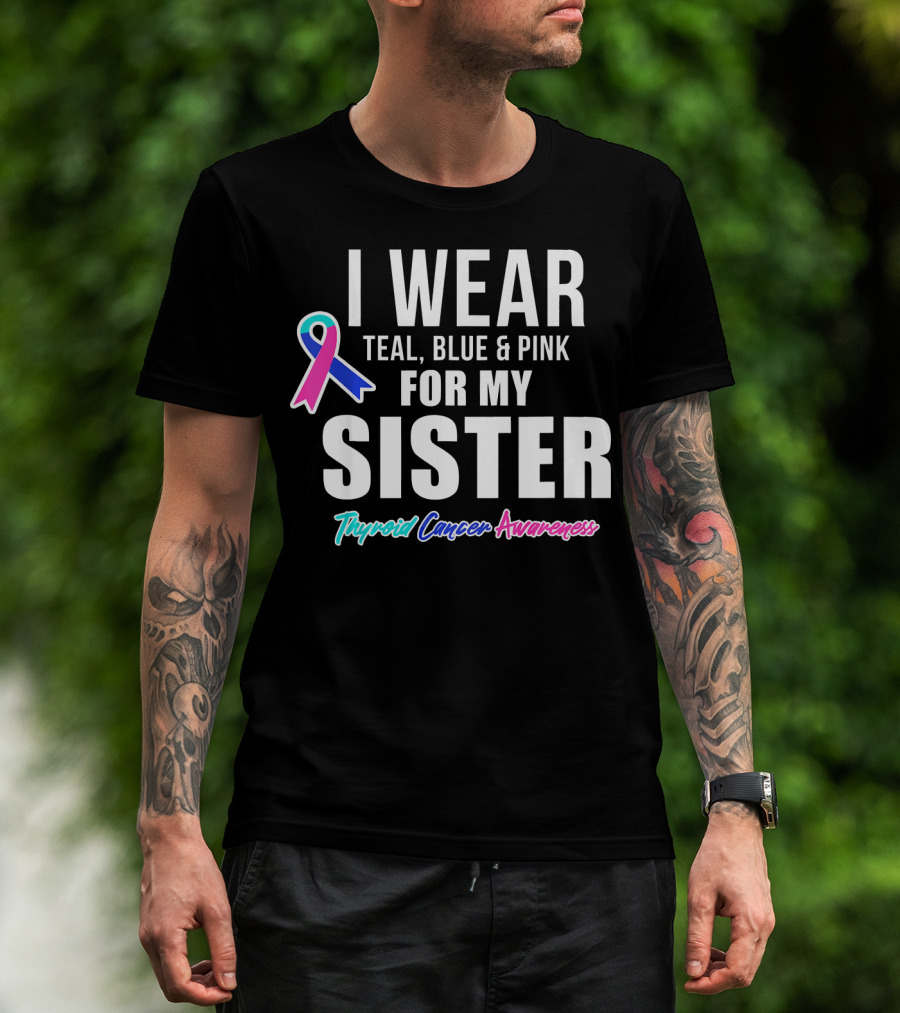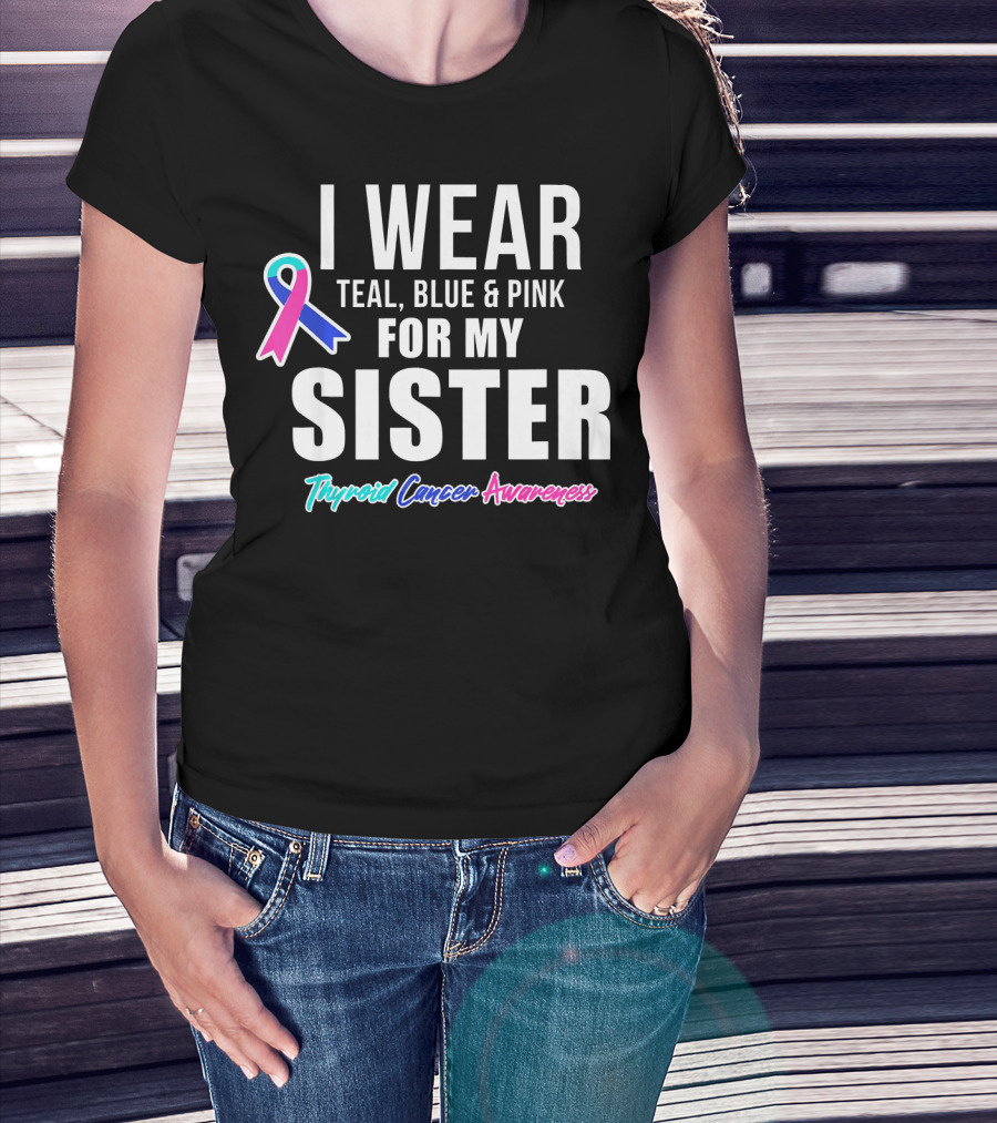I Wear Teal, Blue And Pink For My Sister Thyroid Cancer Awareness T-Shirt
