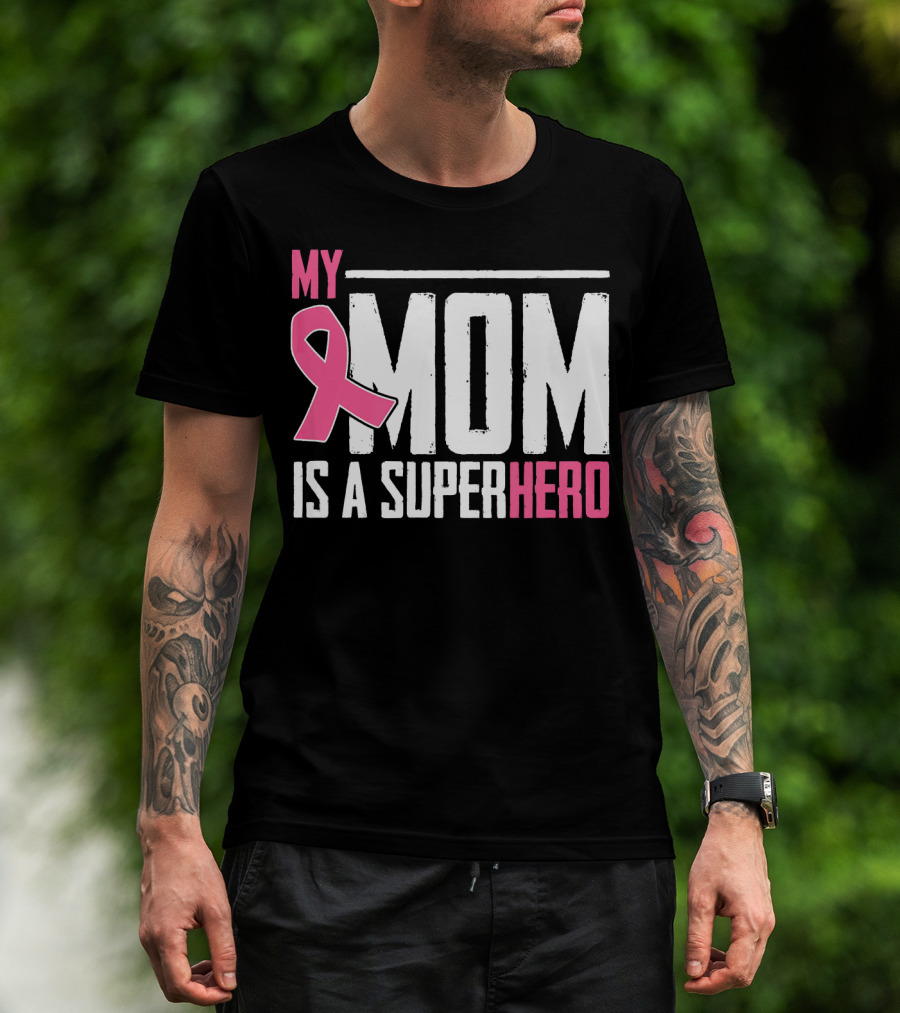 My Mom Is My Superhero Pink Ribbon Breast Cancer Awareness T-Shirt
