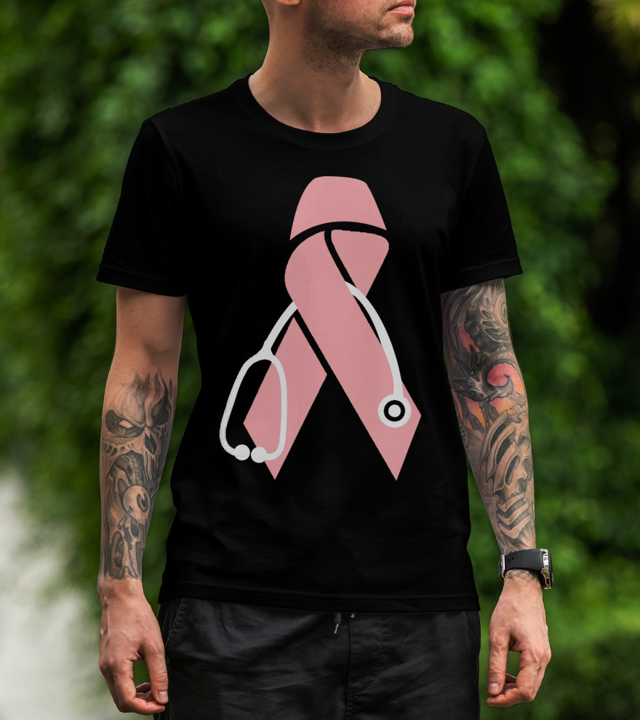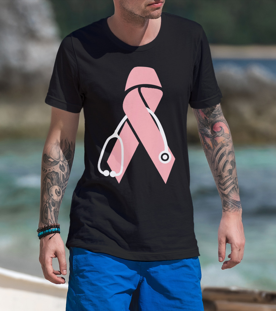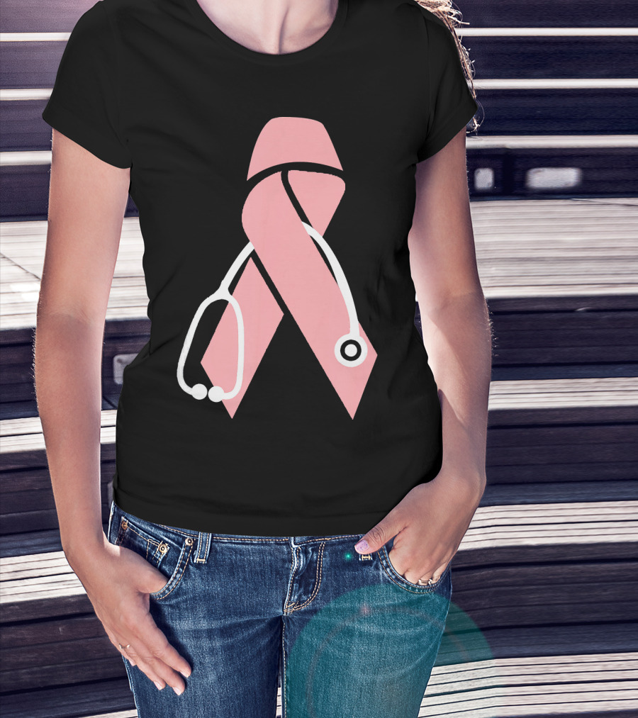 Nurse Doctor Family Friend Brea Pink Ribbon Stethoscope T-Shirt