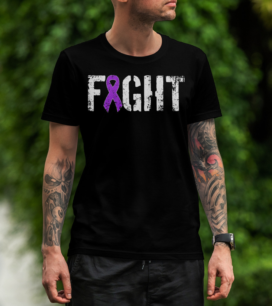 FIGHT Pancreatic Cancer Military Style Purple Ribbon Awareness T-Shirt
