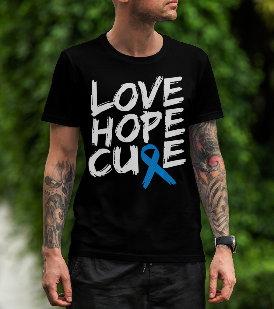 Love Hope Cure Colon Cancer Awareness Blue T-Shirt