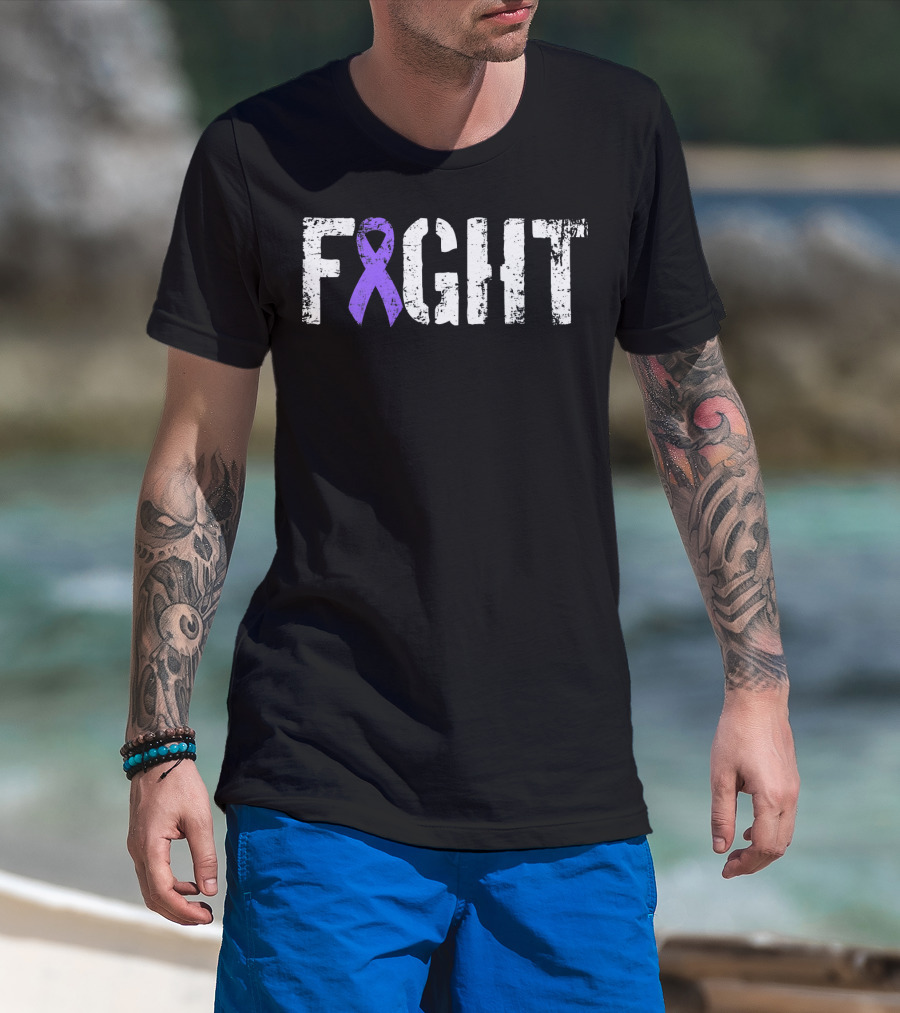 Fight Hodgkins Lymphoma Cancer Purple Ribbon Awareness T-Shirt