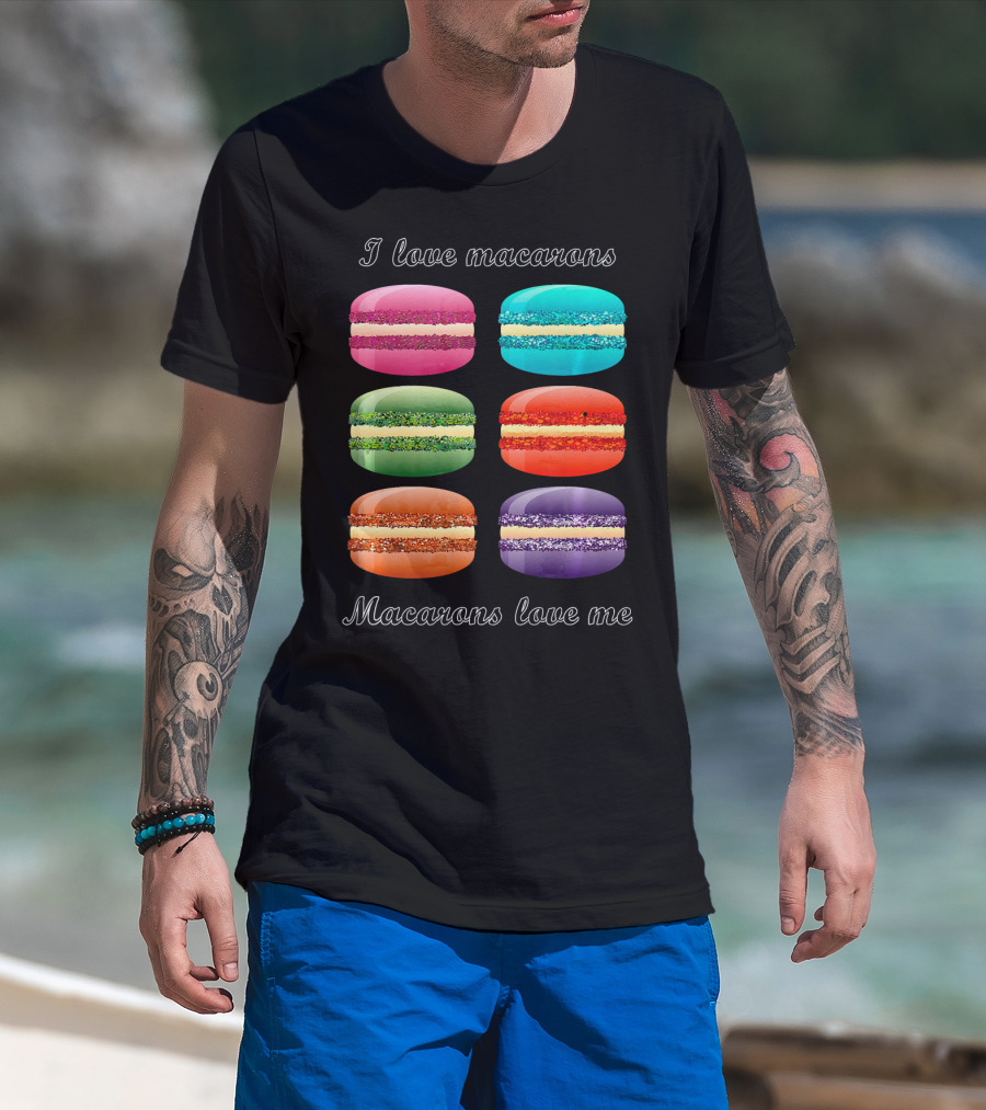 The I Love Macarons Macarons Love Me T-shirt is designed for everyday wear and a consistent fit. Fabric is pre-shrunk ring-spun cotton with durable stitching. See the size chart below for exact measurements.