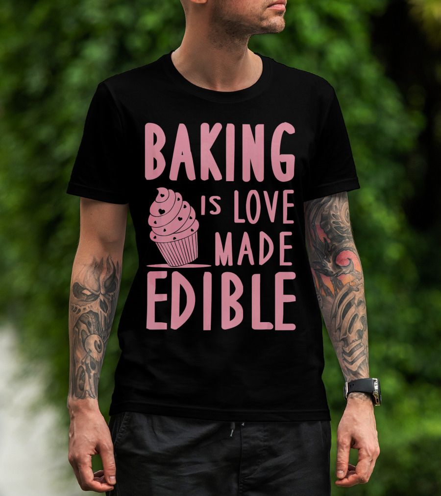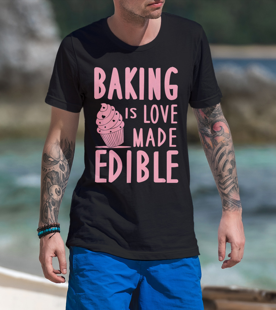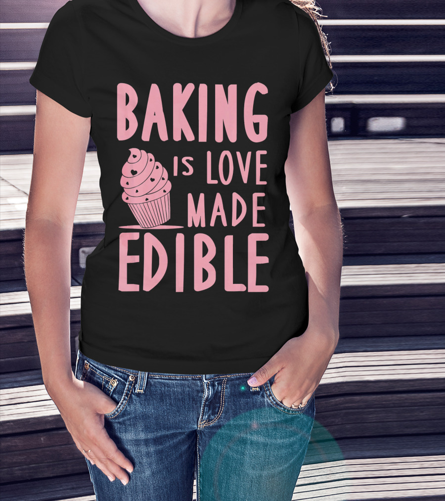 Baking Is Love Made Edible Cute Cupcake Pink Text Sweet Treat T-Shirt
