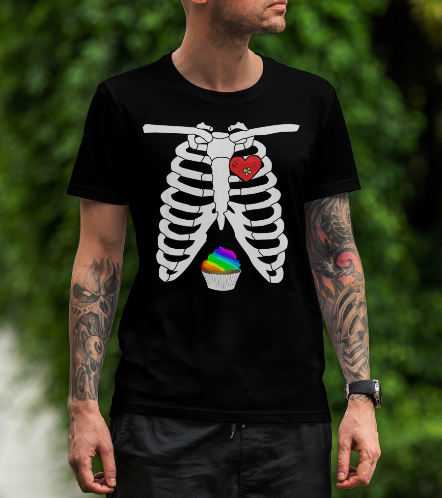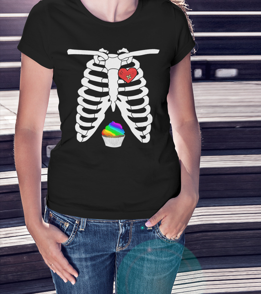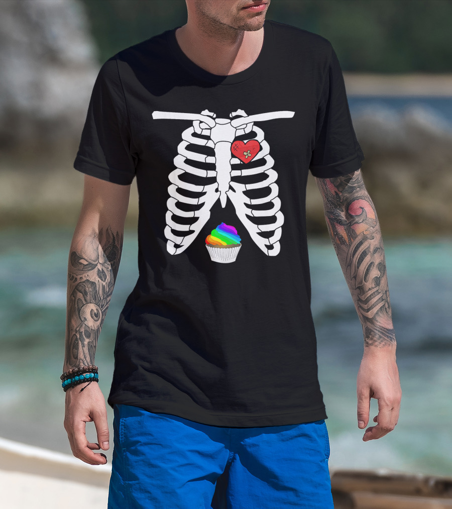 Halloween Skeleton X Ray Rainbow Cupcake Heart T-Shirt