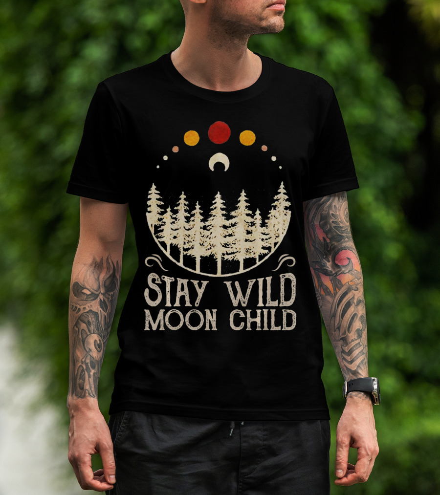 Stay Wild Moon Child Lunar Eclipse Forest Trees And Celestial Phases T-Shirt